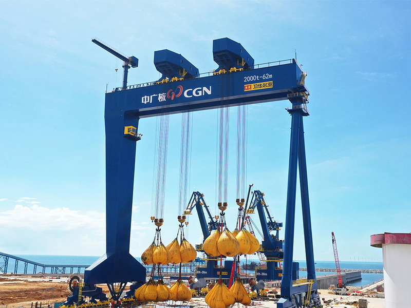 憑借行業(yè)領(lǐng)軍的研發(fā)實(shí)力及創(chuàng)新能力,針對(duì)項(xiàng)目復(fù)雜的工況要求,衛(wèi)華現(xiàn)已研制出2000t軌道式龍門起重機(jī),其起升總高度達(dá)90m,跨度達(dá)62m,采用雙小車設(shè)計(jì),并在生產(chǎn)制造環(huán)節(jié)采用AWS標(biāo)準(zhǔn),可保障在極端情況下將吊裝重物安全降至地面,實(shí)現(xiàn)各機(jī)構(gòu)零速制動(dòng),使沖擊造成的載荷降為零,保證運(yùn)行機(jī)構(gòu)、起升機(jī)構(gòu)的平穩(wěn)性,滿足設(shè)備安裝精度的要求。